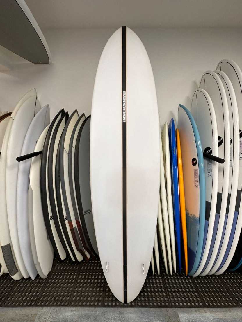 "Este estilo de forma fue una petición de Craig a principios de 2020, para surfear en olas medianas, así como en los días más grandes mientras estás atrapado en casa. Su rocker más plano lo convierte en un gran remero; capaz de atrapar casi cualquier cosa". Hayden