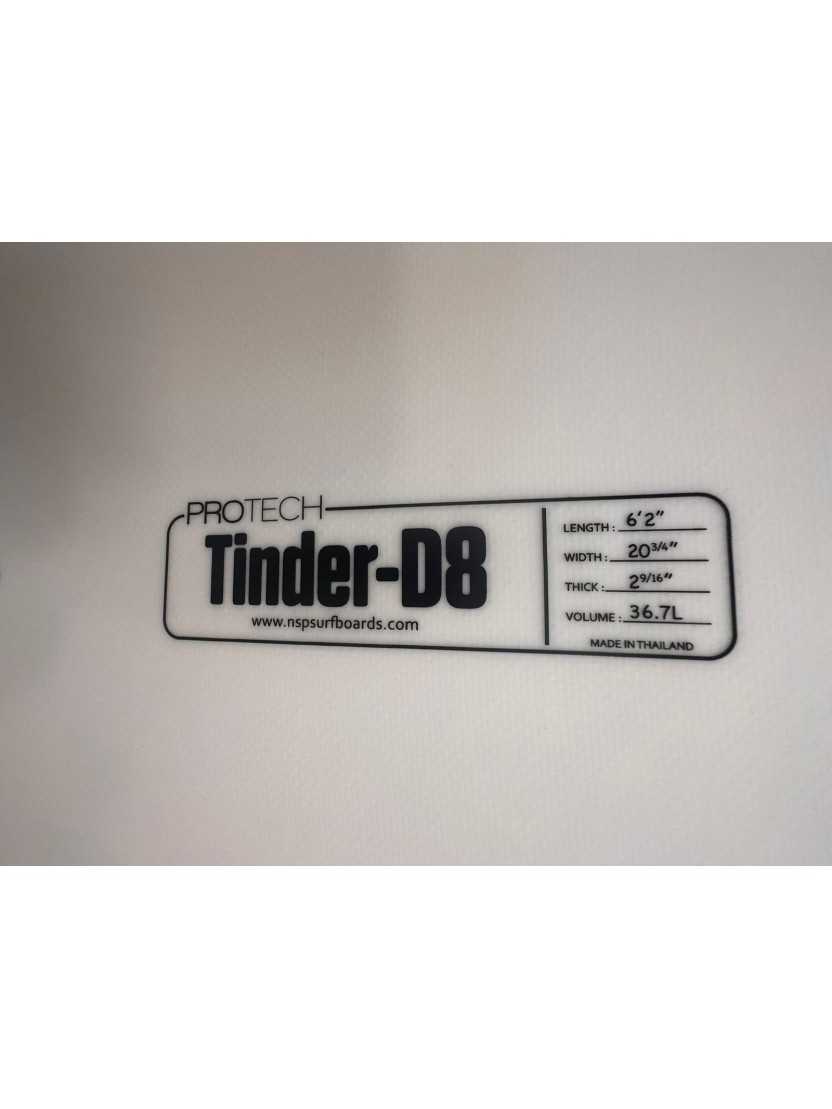 El Tinder-D8, con una cola cuadrada redondeada y una configuración de aletas cuádruples o propulsoras, un cóncavo simple desde la sección media hasta las aletas dobles, combinado con un rocker más plano, te lleva por la línea rápidamente, mantiene en el bolsillo y mejora tus maniobras.